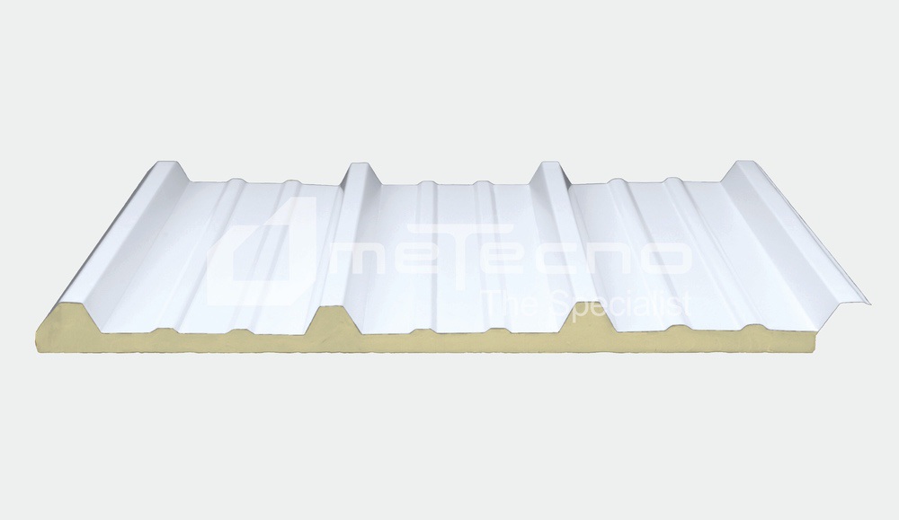 Panel económico diseño estándar, cara superior de lámina ligera, inferior de vinil, capa de aislante de poliuretano (PUR).
