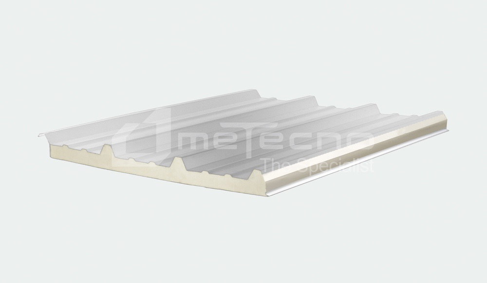Panel tipo teja, caras de lámina, aislante de poliuretano (PUR).